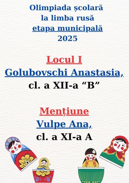 Cu mare mândrie și entuziasm, avem plăcerea să anunțăm alte rezultate frumoase obținute de către elevii noștri în cadrul olimpiadelor școlare, de această dată la etapa MUNICIPALĂ: